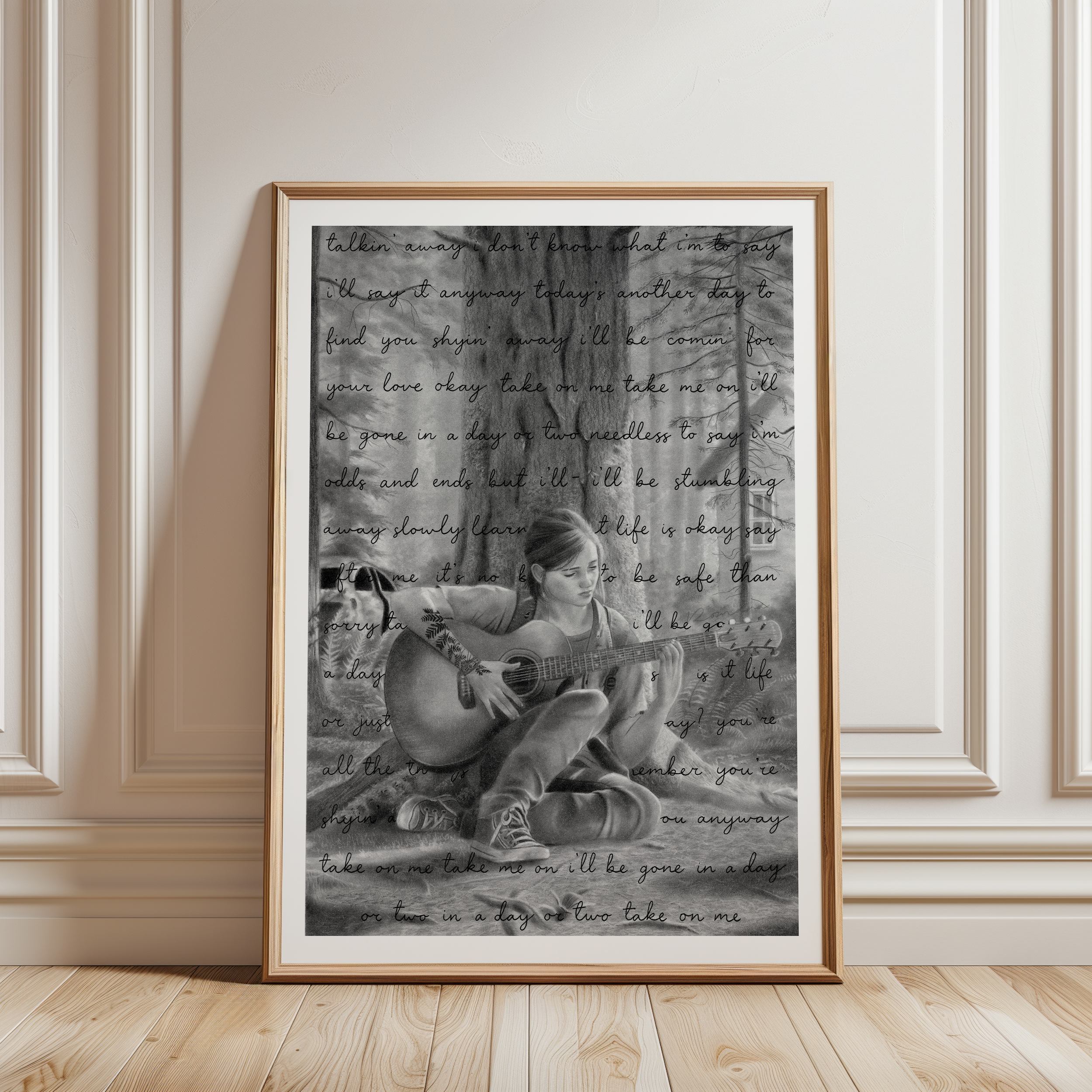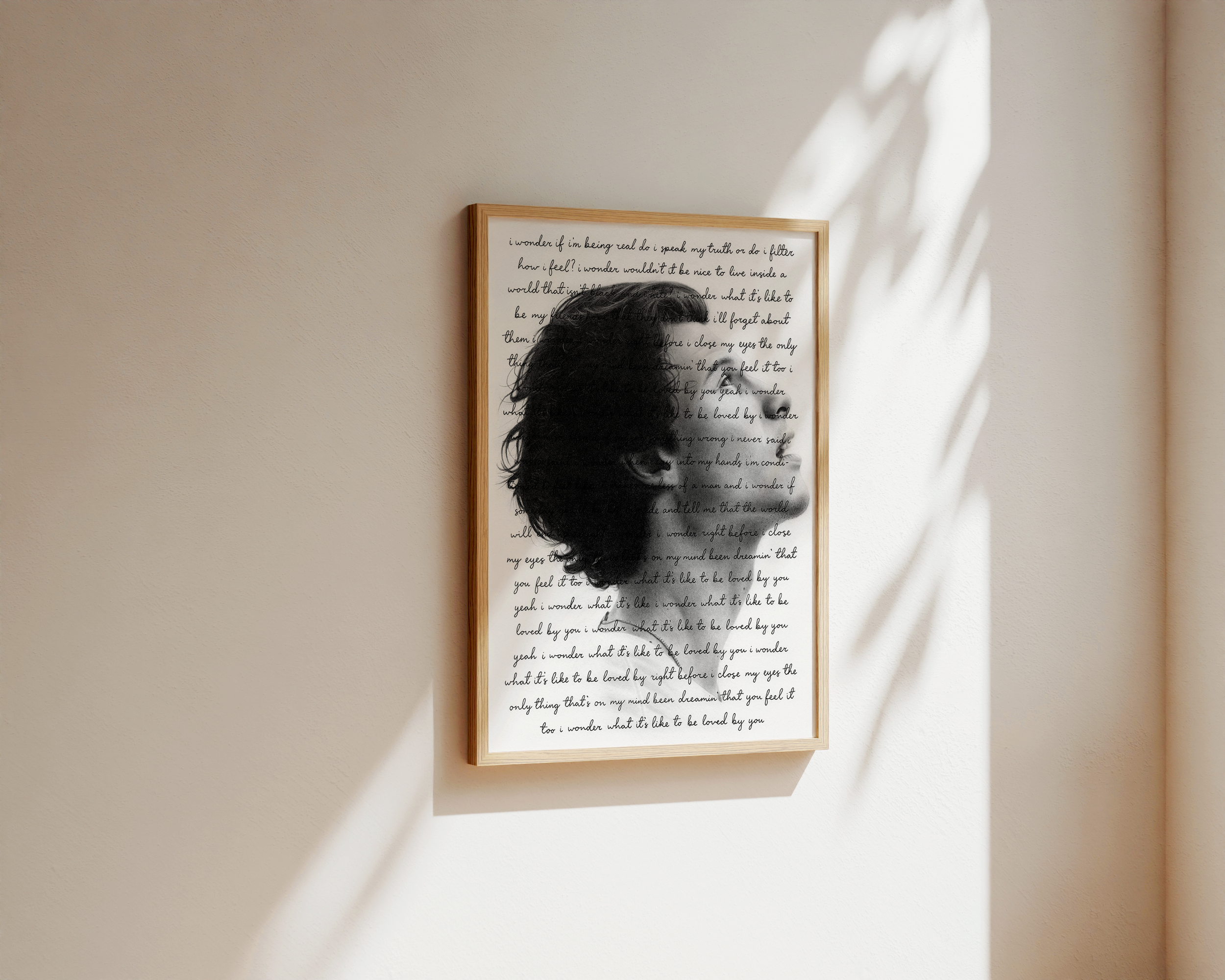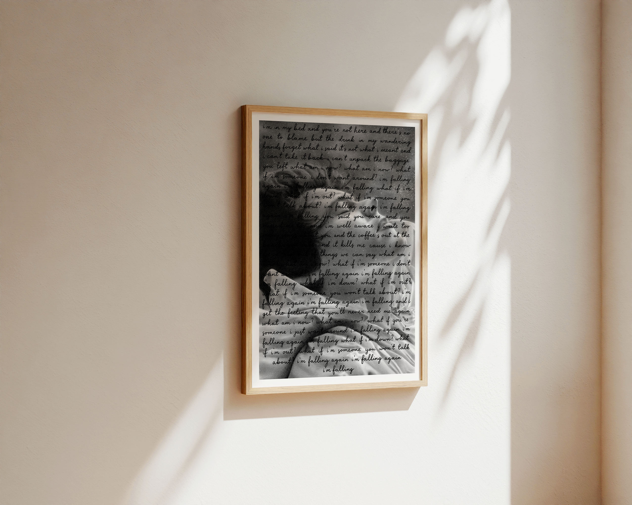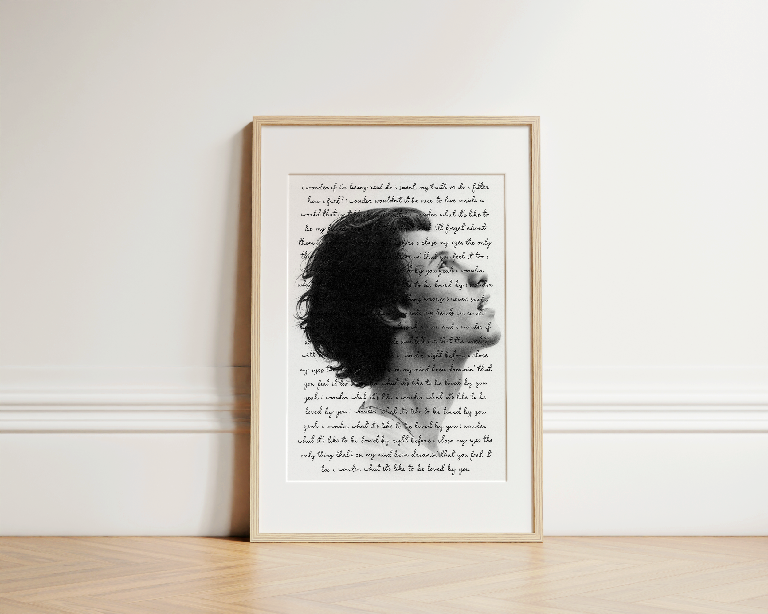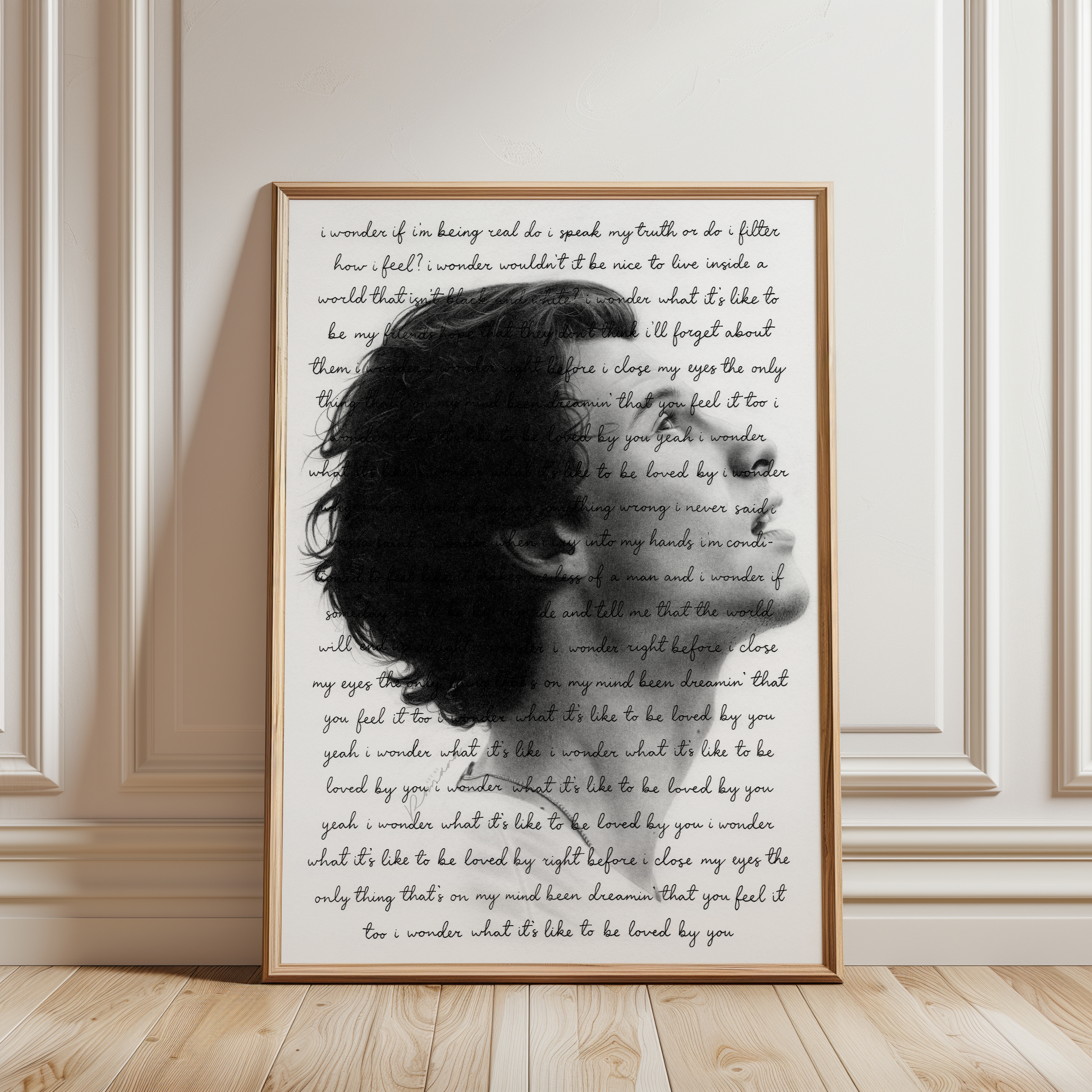 Portrait drawing of Conrad Fisher from The Summer I Turned Pretty with handwritten lyrics of False God by Taylor Swift fine art print on premium quality heavyweight matte paper.